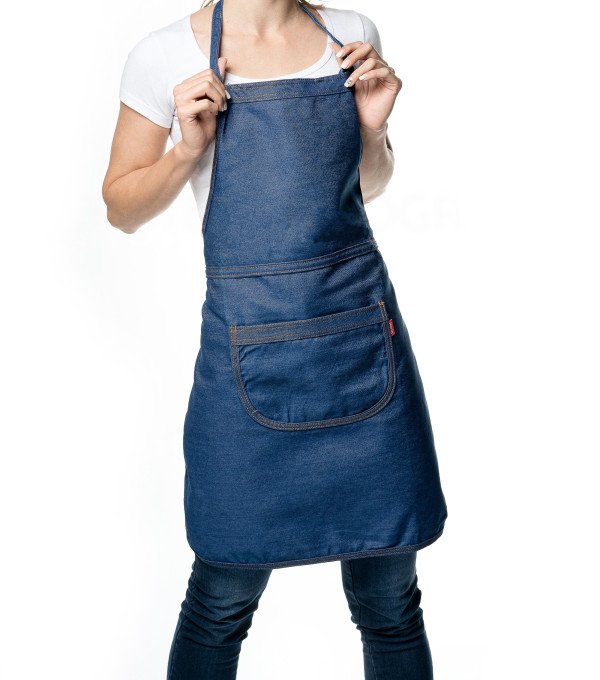 Avental Du Chef®, confeccionado em jeans. Os aventais de peito Du Chef® possuem regulador de alça, bolso frontal e costura dupla reforçada. São resistentes, estilosos e podem compor o uniforme para atividades diversas. Ideal para uso doméstico, ou em bares, lanchonetes e restaurantes, seja para cozinha ou limpeza, atendimento no balcão ou atendimento nas mesas. Podem também compor o uniforme em cozinhas industriais (quando associados ao uso da dólmã) ou para atividade industrial que requeira proteção leve. Além dos usos doméstico, comercial e industrial, os aventais Du Chef® podem uniformizar alunos de cursos de culinária, gastronomia, pintura e artesanatos em geral.
