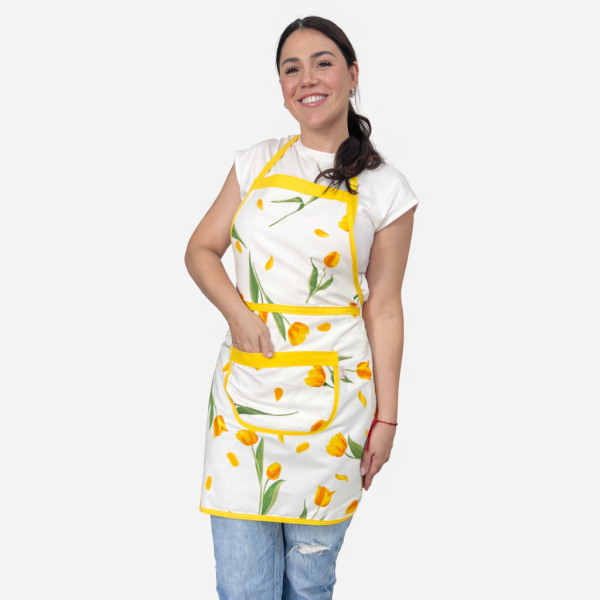 Avental Algodão Estampado Tulipas Amarelas