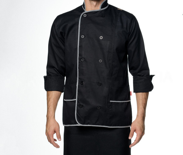 Dólmã Du Chef®, confeccionado em algodão (brim). Os dólmãs Du Chef® possuem bolsos frontais e costura dupla reforçada. Seu corte com inspiração em jaquetas e casacos militares transpassados conferem ares modernos e requintados. São resistentes, estilosos e podem compor o uniforme para atividades diversas. Ideal para a uniformização de chefes de cozinha. Podem também compor o uniforme para cozinhas industriais (quando associados ao uso do avental Du Chef®) ou para atividade industrial que requeira proteção leve. Os dólmãs Du Chef® também podem uniformizar alunos de cursos de culinária, gastronomia e cozinha em geral.