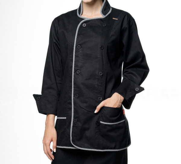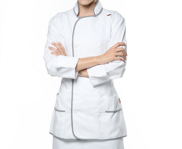 Dólmã Du Chef®, confeccionado em algodão (brim). Os dólmãs Du Chef® possuem bolsos frontais e costura dupla reforçada. Seu corte com inspiração em jaquetas e casacos militares transpassados conferem ares modernos e requintados. São resistentes, estilosos e podem compor o uniforme para atividades diversas. Ideal para a uniformização de chefes de cozinha. Podem também compor o uniforme para cozinhas industriais (quando associados ao uso do avental Du Chef®) ou para atividade industrial que requeira proteção leve. Os dólmãs Du Chef® também podem uniformizar alunos de cursos de culinária, gastronomia e cozinha em geral.