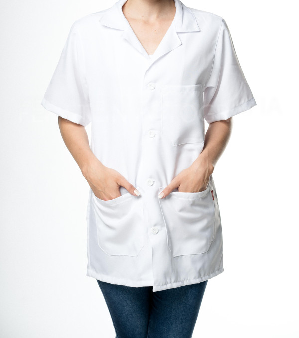 Jaleco com mangas -unissex Du Chef®, confeccionado em poliéster (oxford). Nosso jaleco para padaria, professor e atendente de balcão! Os jalecos Du Chef® possuem dois bolsos, abotoamento frontal, costura reforçada e pequena fenda atrás (que permite o ideal ajustamento). São resistentes, estilosos e podem compor o uniforme para diversas atividades: